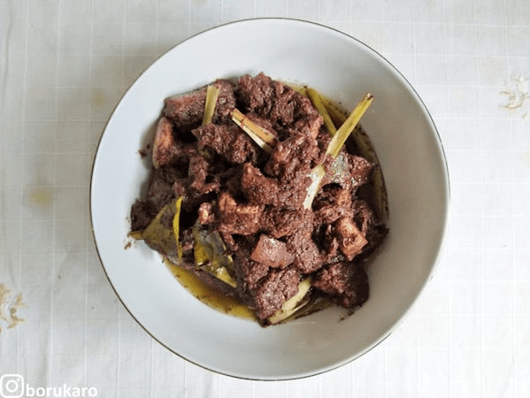 Lalu, masukkan ayam dan bumbu-bumbu tadi ke dalam rebusan gula merah dan air kelapa. Masak lagi ayam tersebut hingga dagingnya empuk. Kemudian, matikan api dan biarkan sampai meresap atau kamu bisa membiarkannya semalaman untuk hasil terbaik.